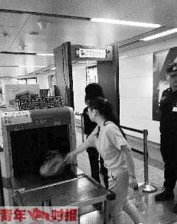 除了安檢門和X射線安檢設備傳送帶,警方還在安檢處配備了爆炸物品探測儀、液體檢測儀,對包括易燃易爆、管制刀具等禁止攜帶的物品進行全方位檢測。